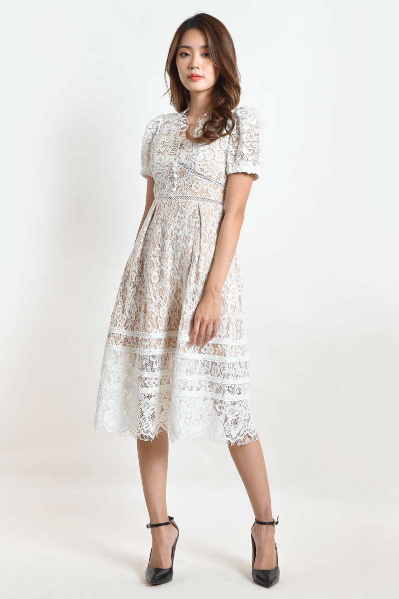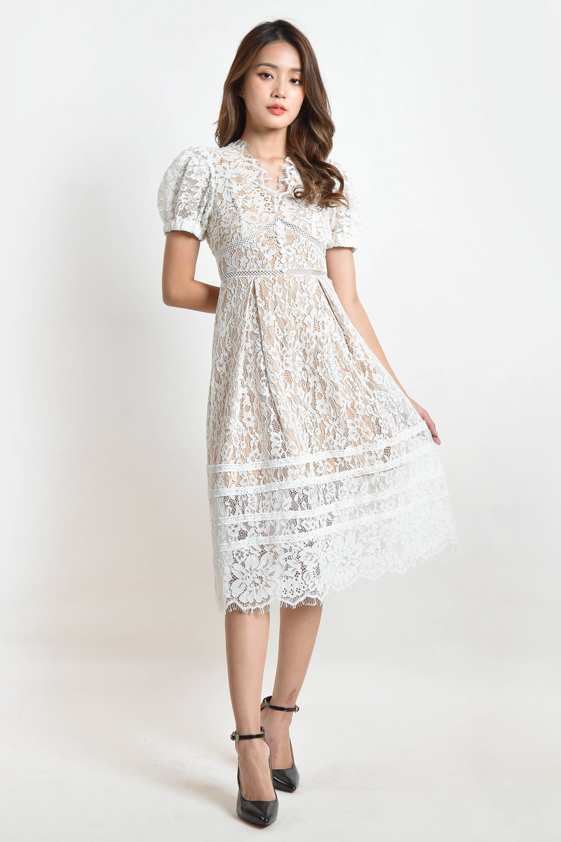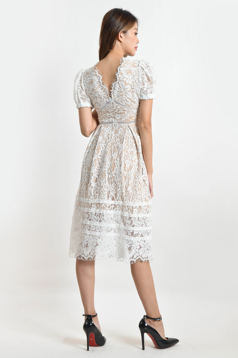 Addie Lace Midi Dress - White