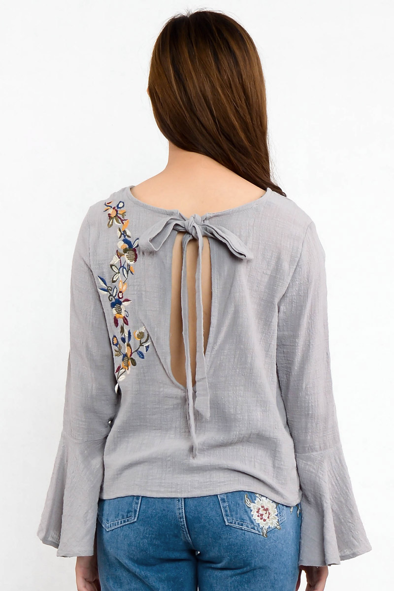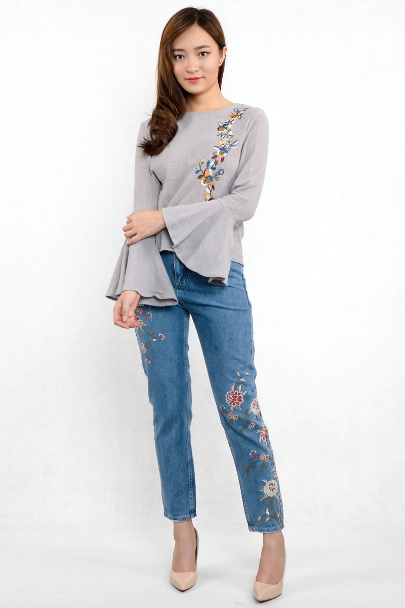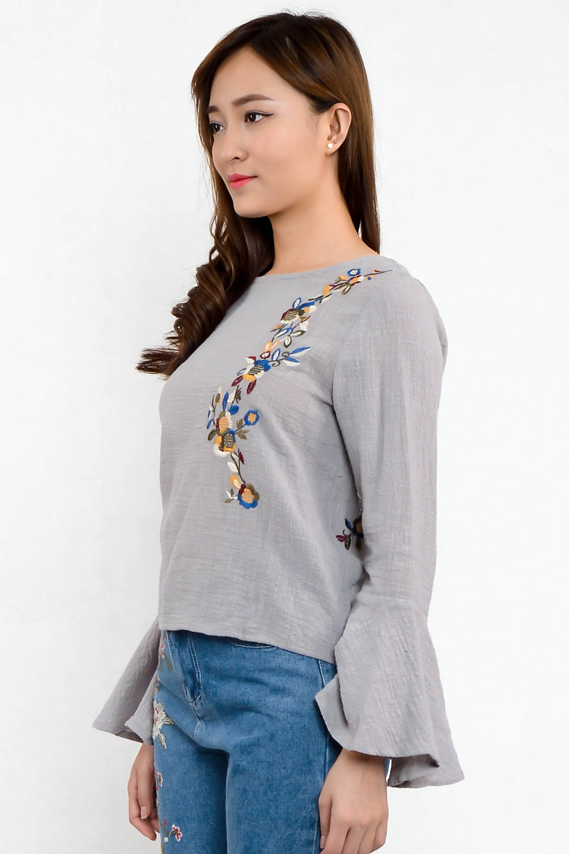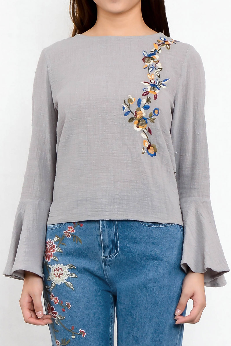Aldefia Trumpet Top with Embroidery