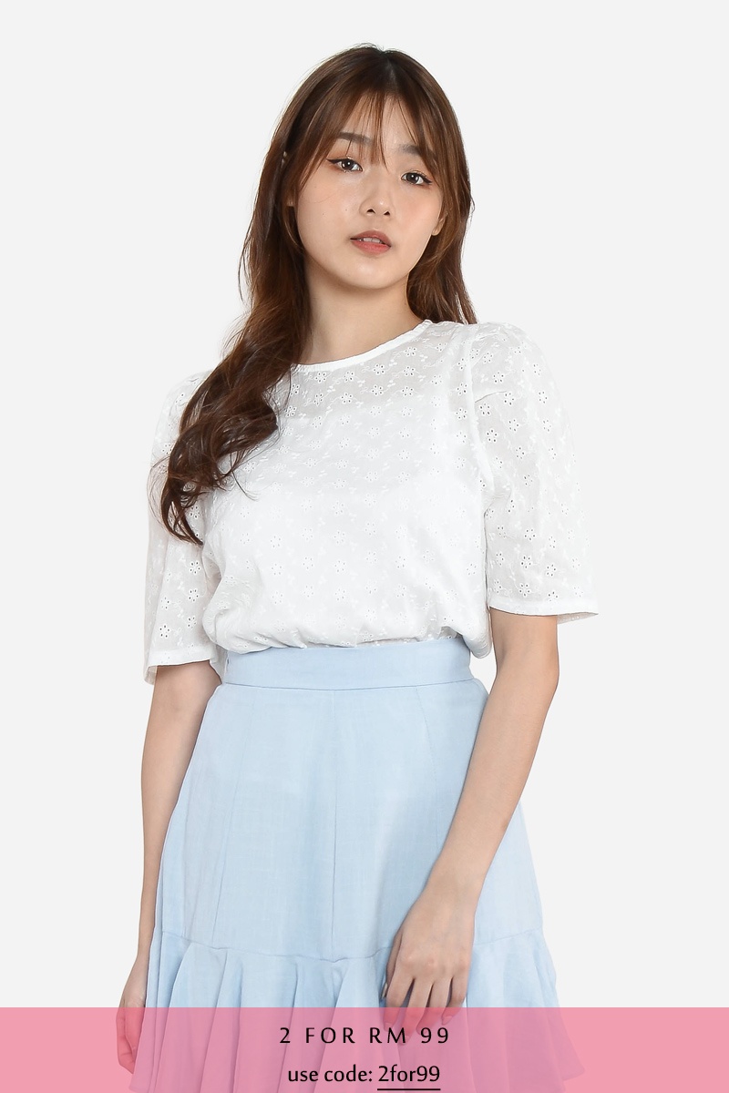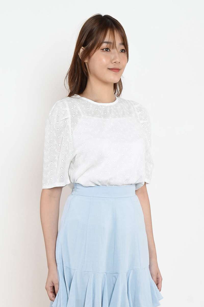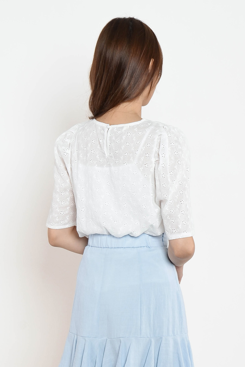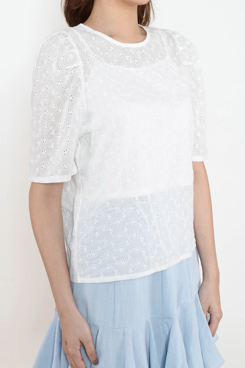 Jacquiline Puff Sleeve Top - White (free inner singlet)