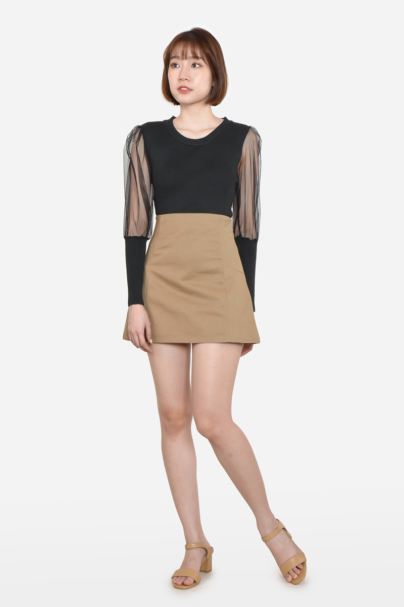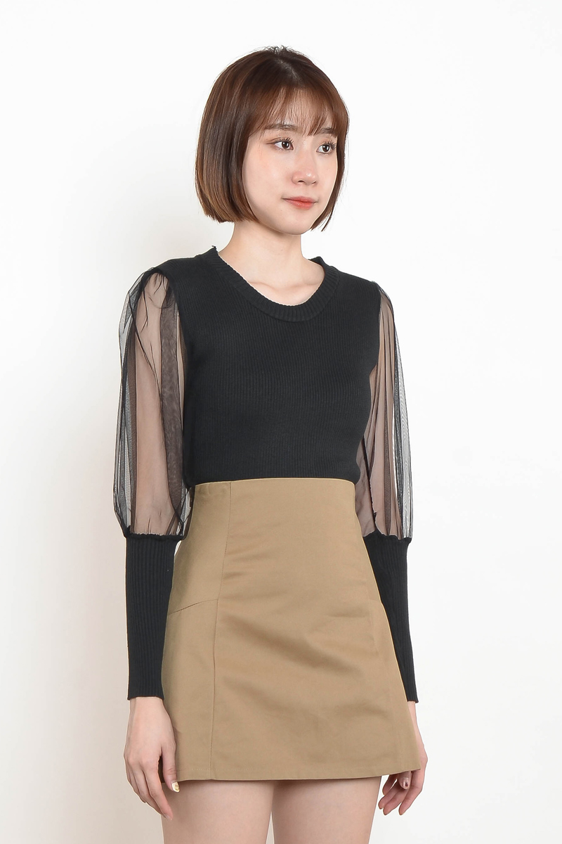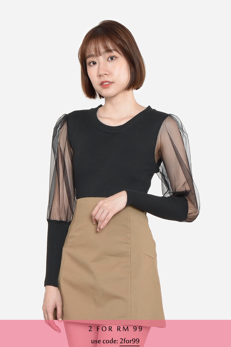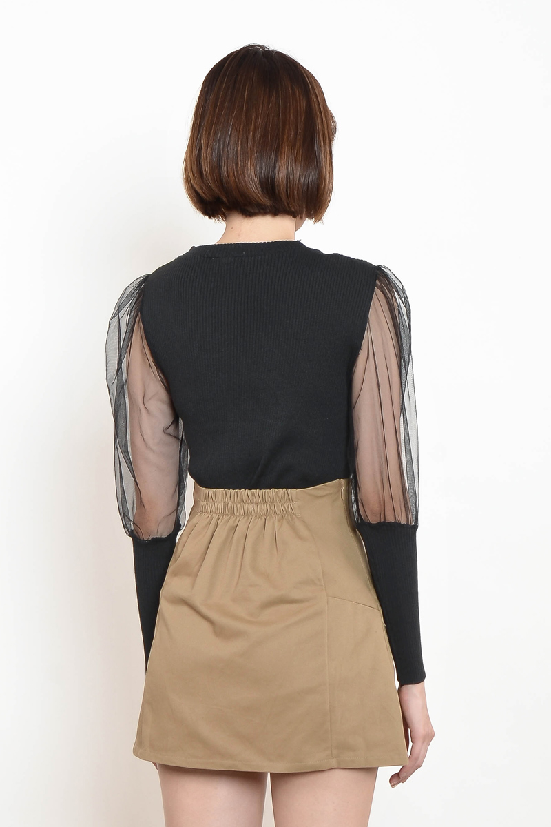 Alverta Puff Mesh Top - Black