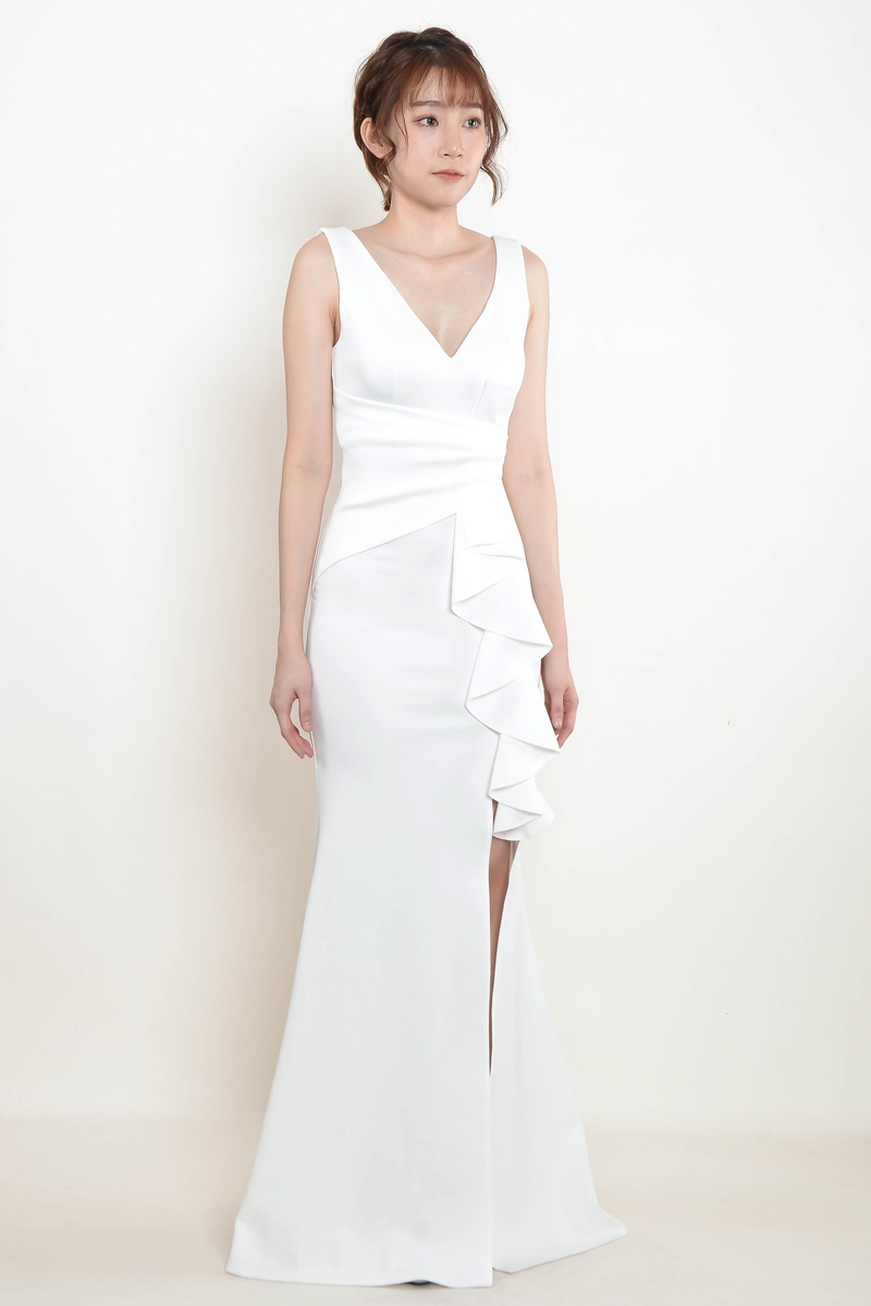 Tags: aretha, deep, slit, dress, white, 30/03 [backorder, eta, mid, may] occasion