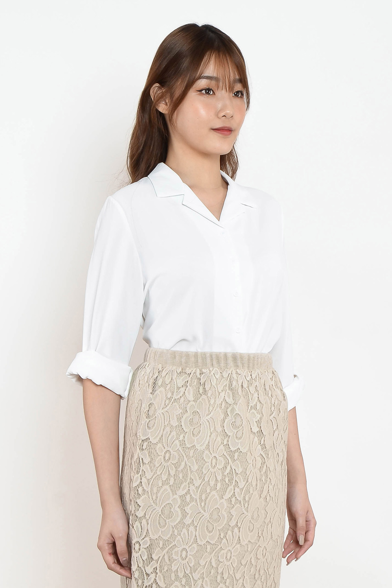 Jacquiline Puff Sleeve Top - White (free inner singlet)