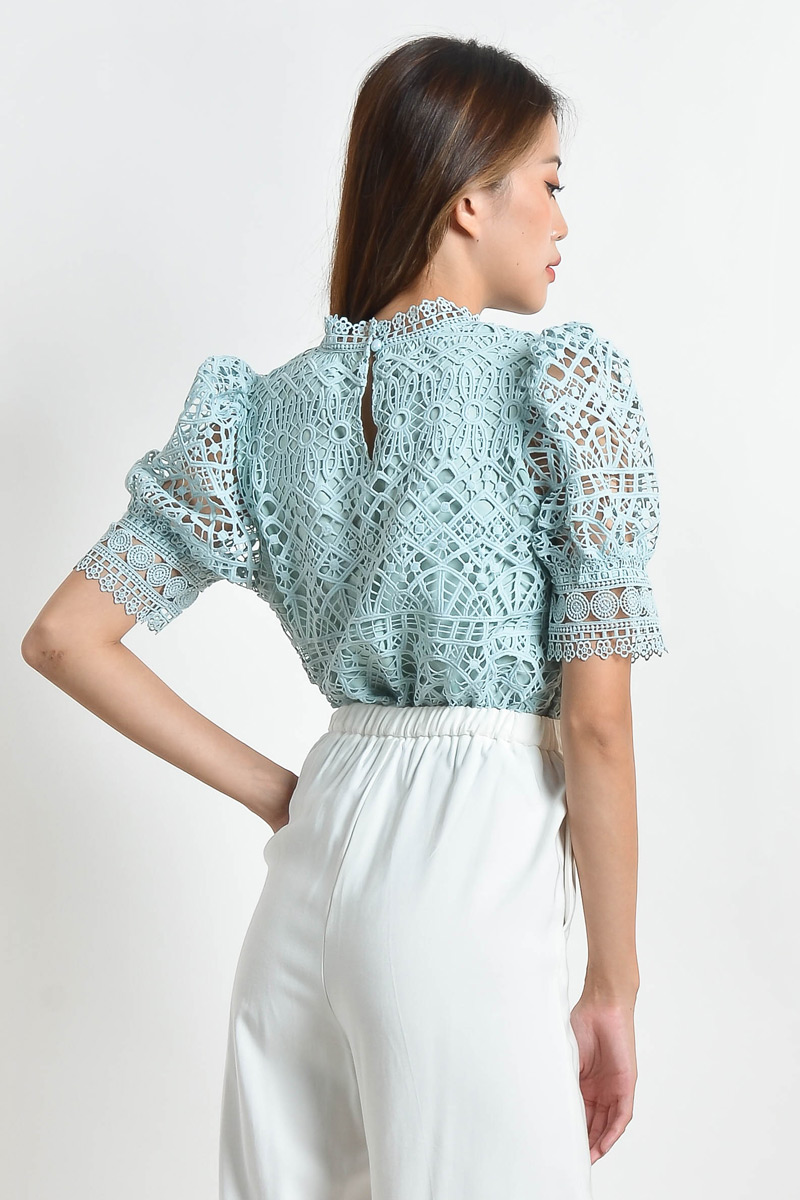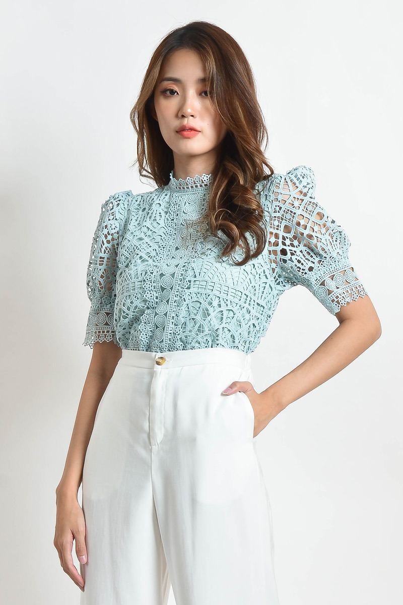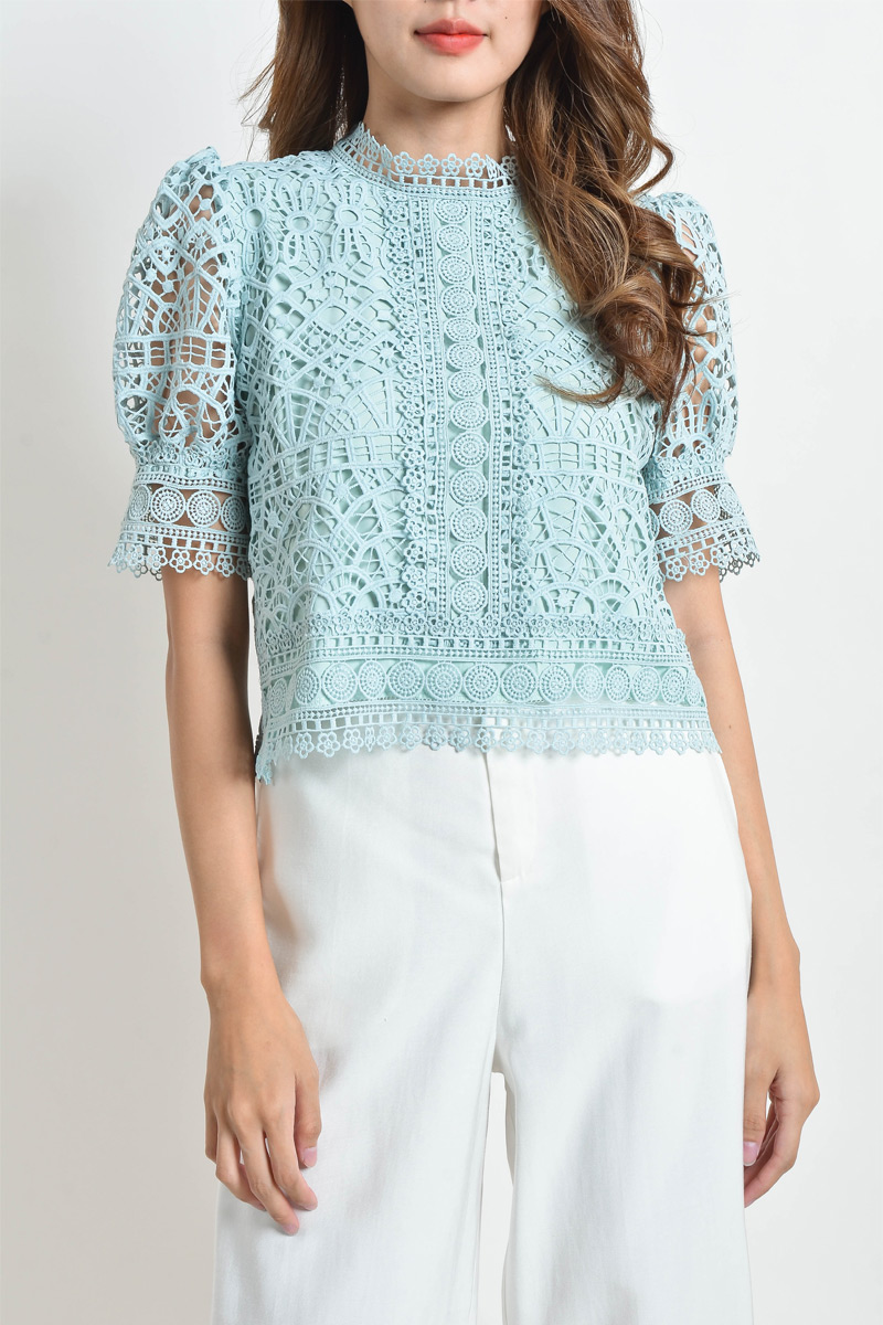 Tags: dena, crochet, puff, sleeve, top, teal, 11/05 occasion