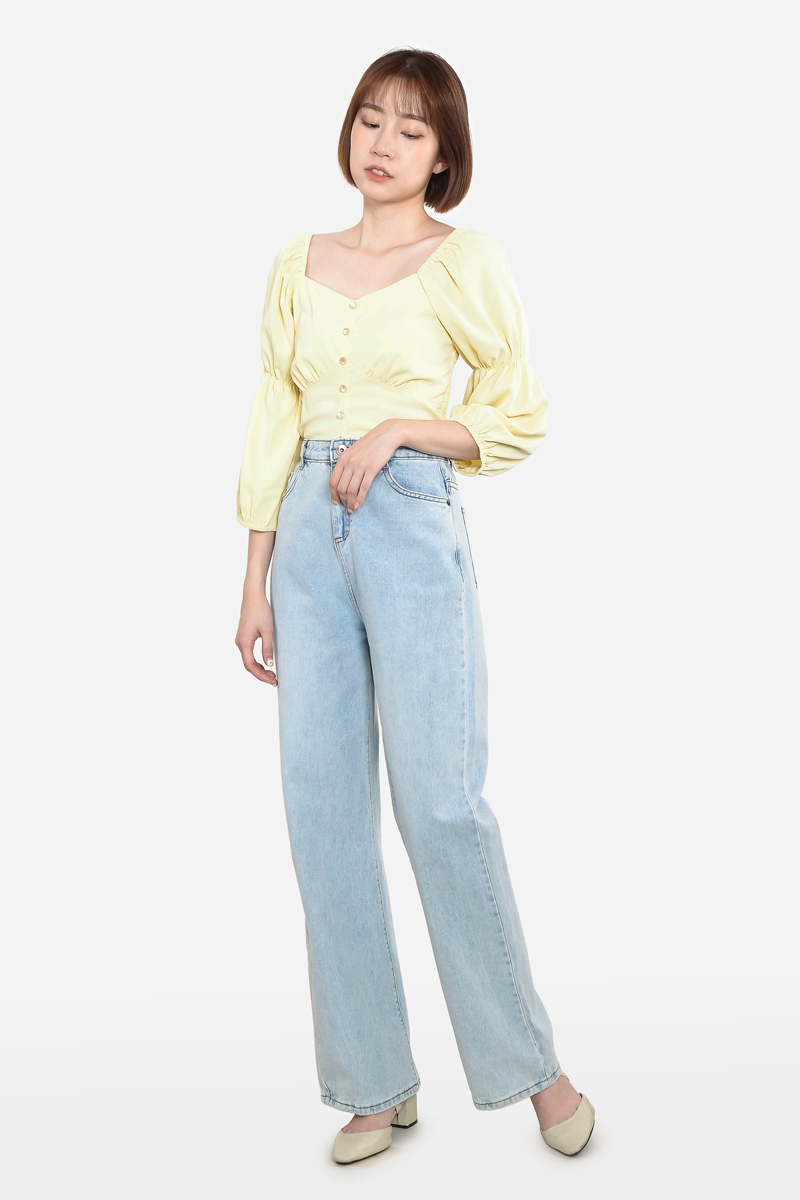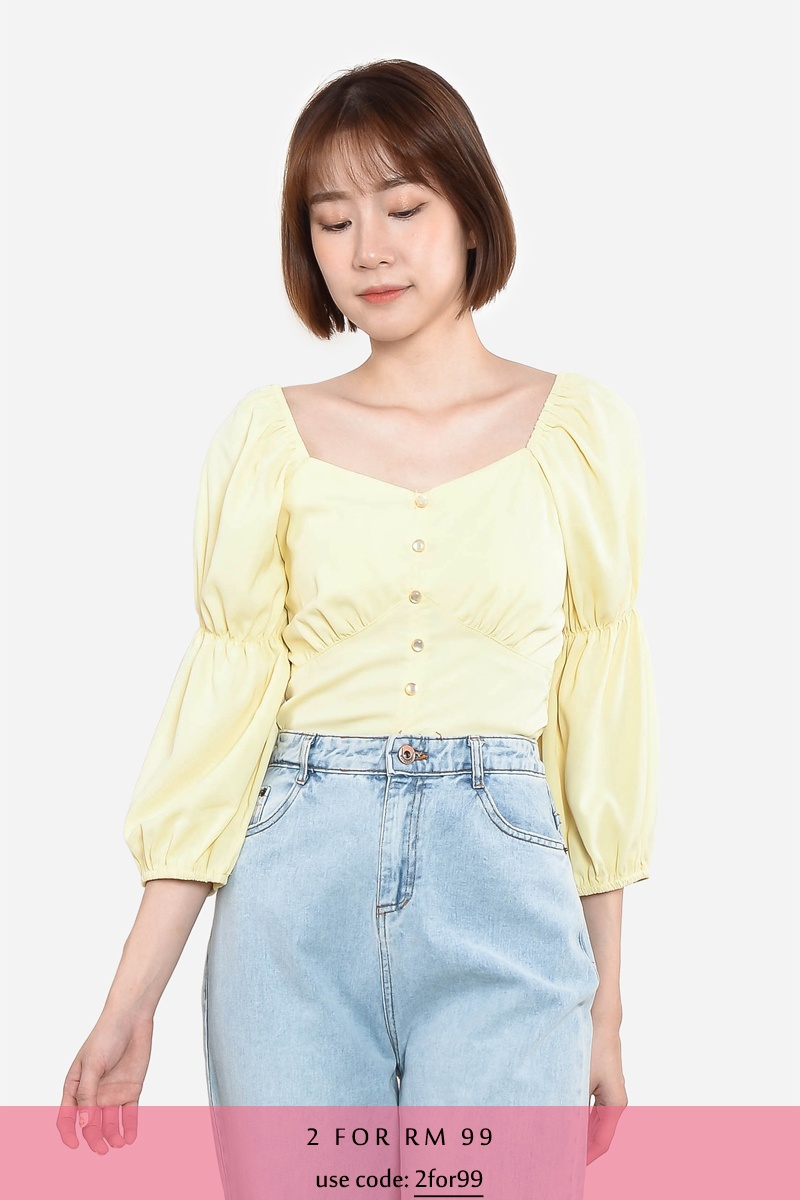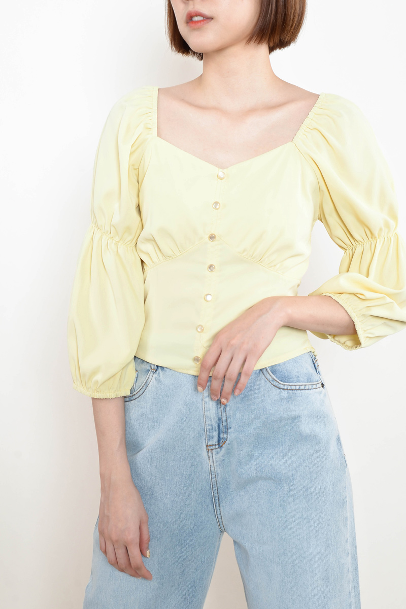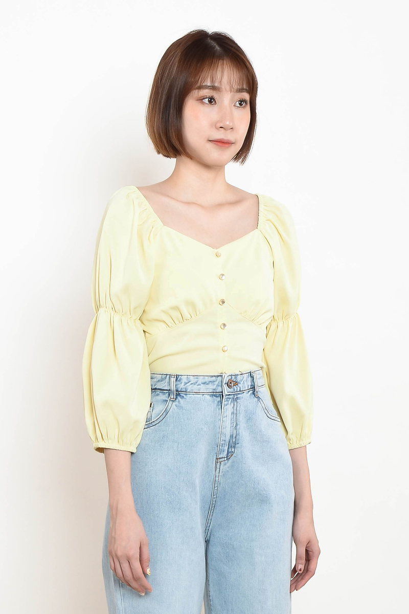 Genevie Puff Sleeve Top - Yellow