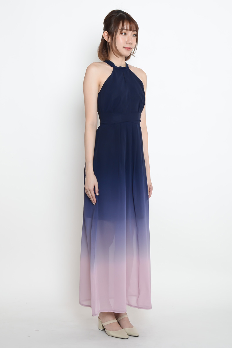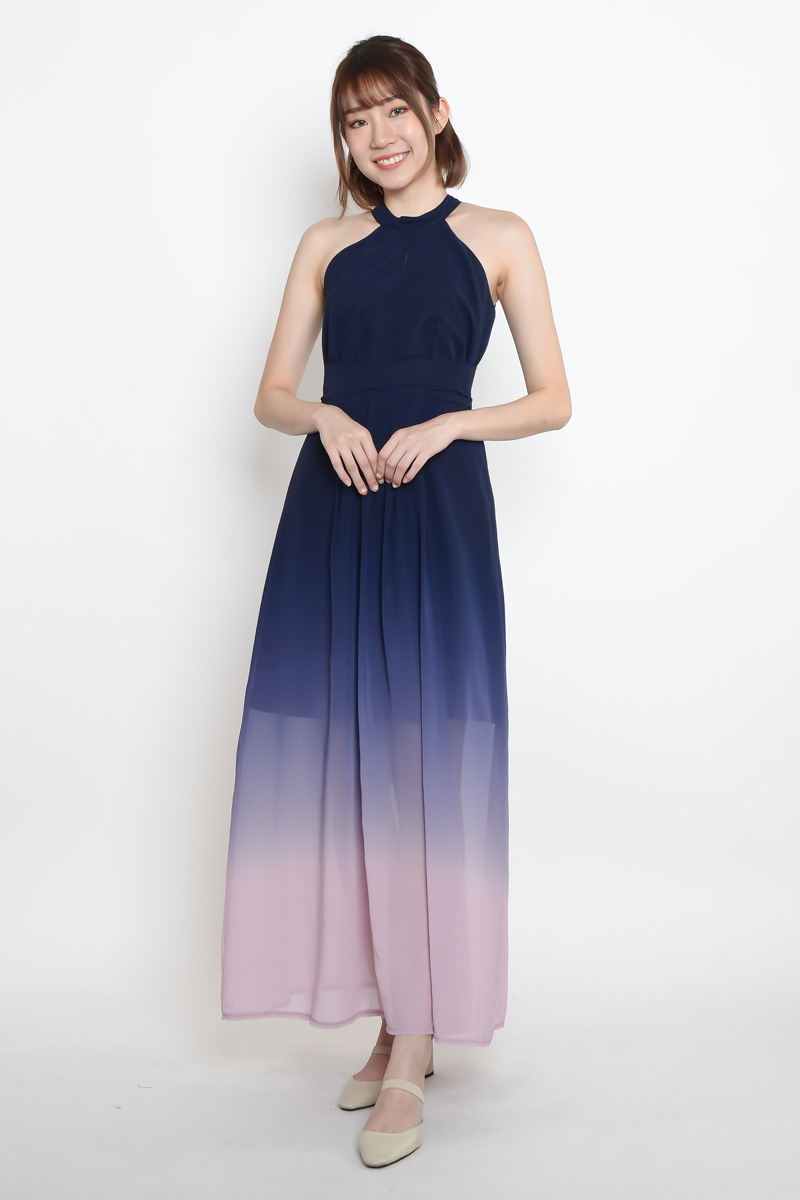 Gyinn Ombre Halter Maxi Dress - Dark Blue