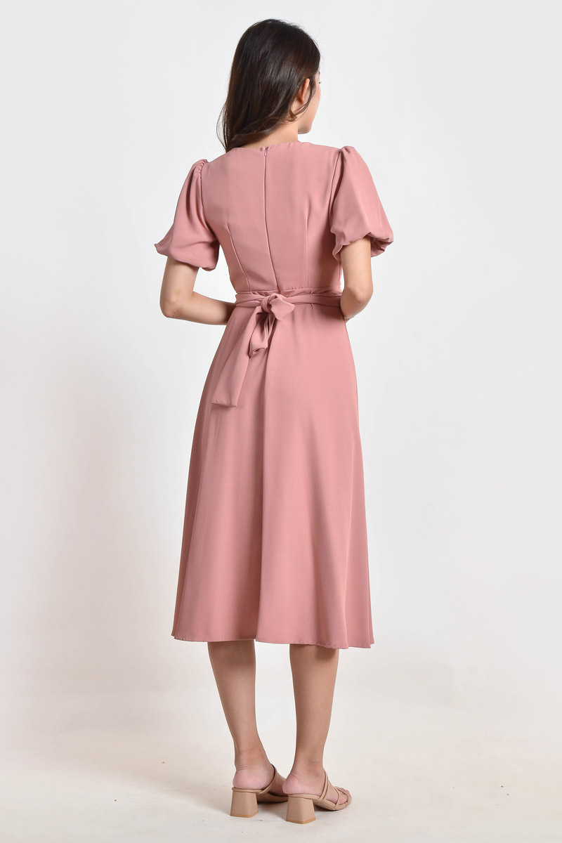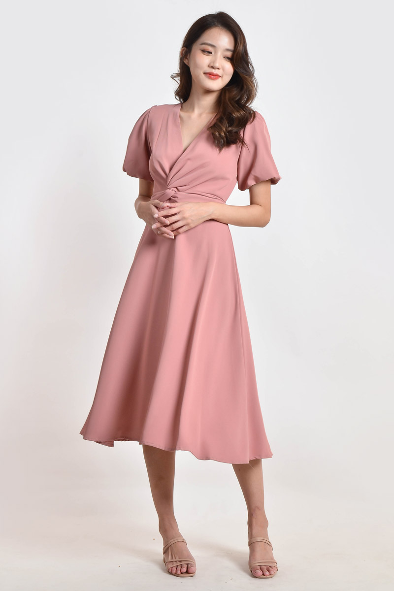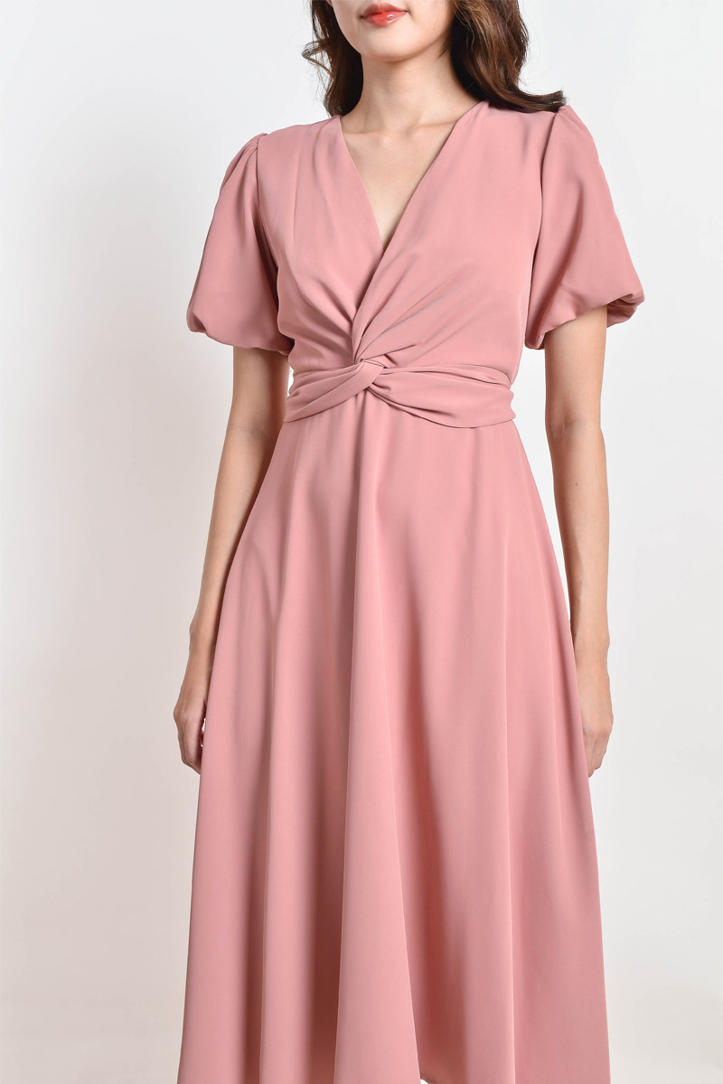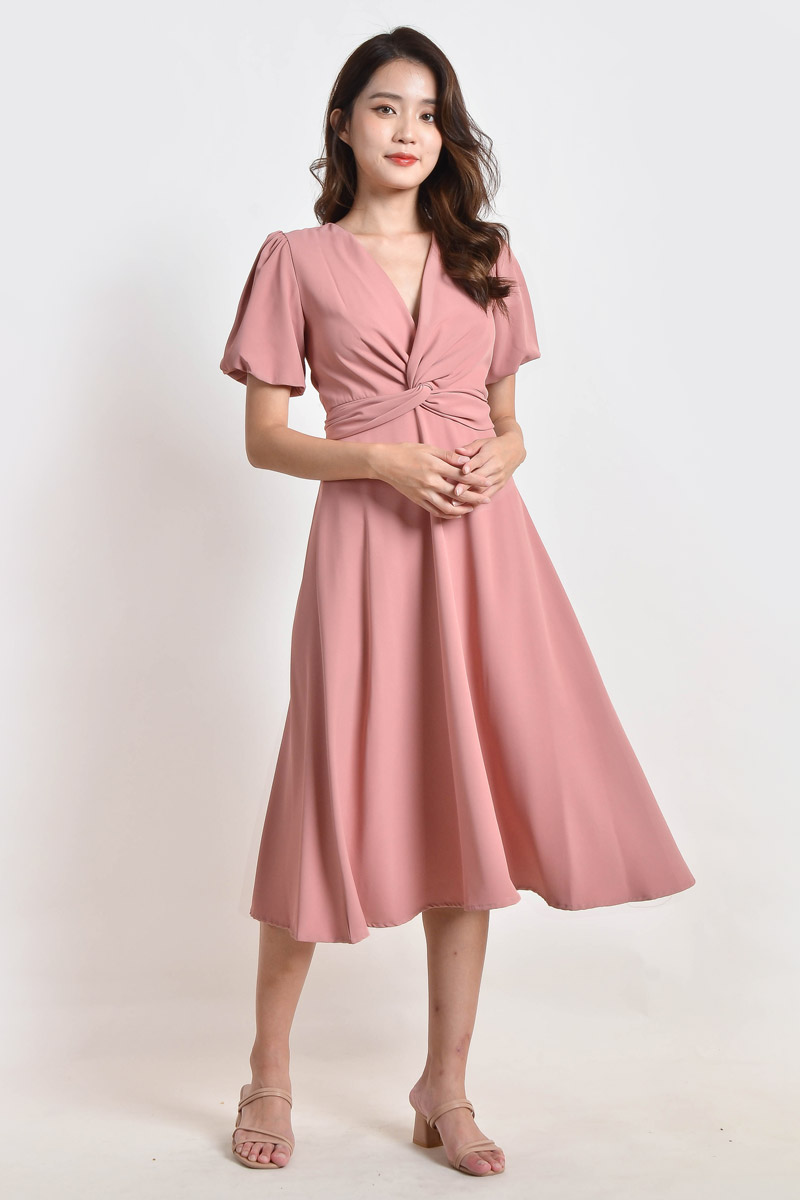 Hana Knotted Midi Dress - Pink