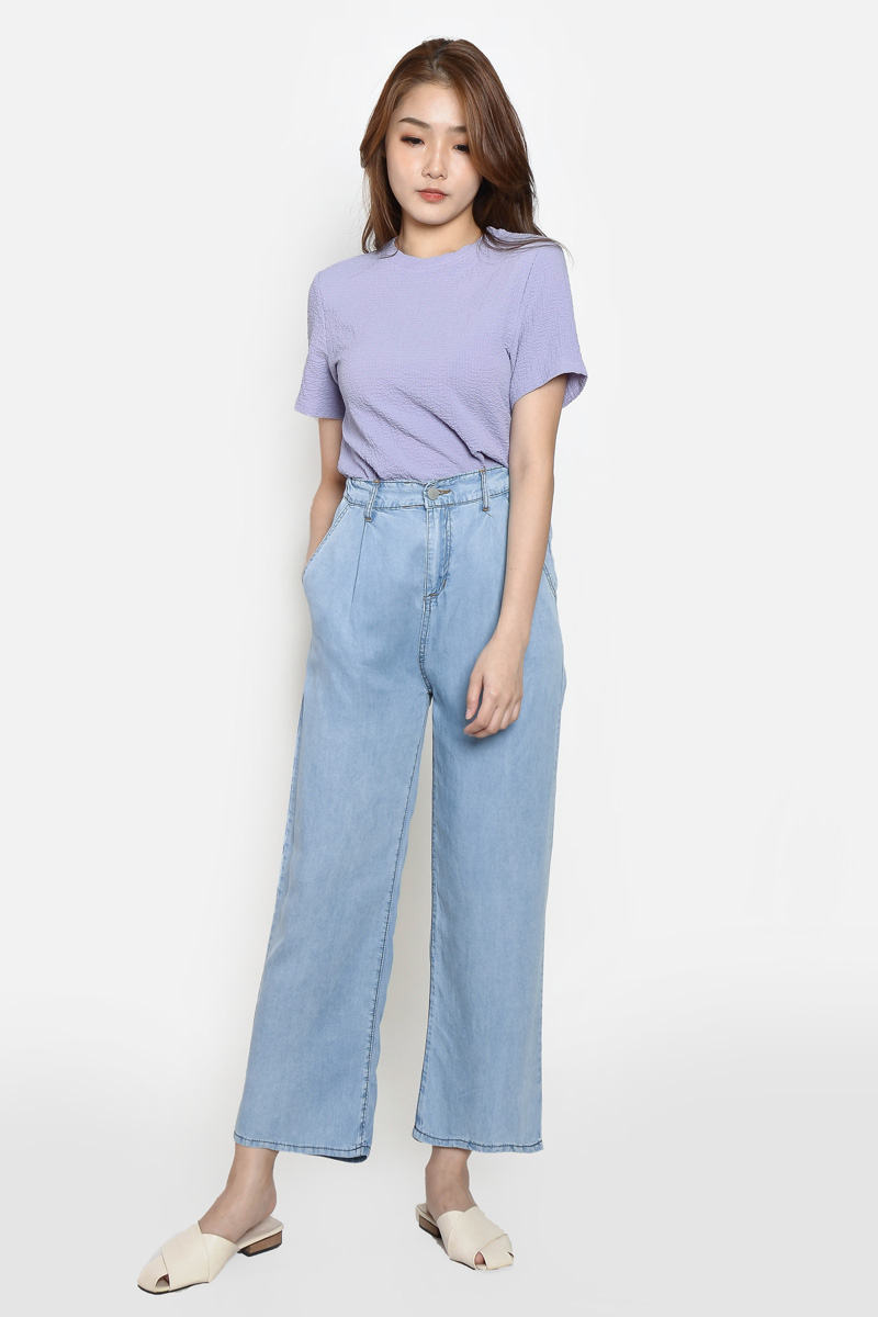 Hillary Jacquard Basic Top - Purple