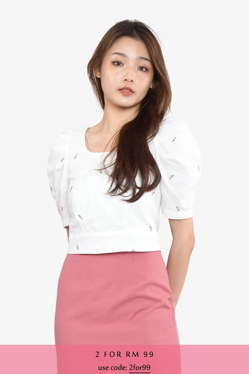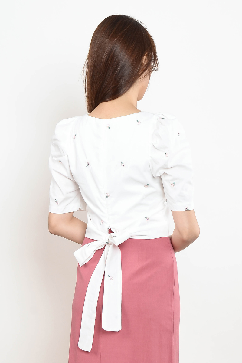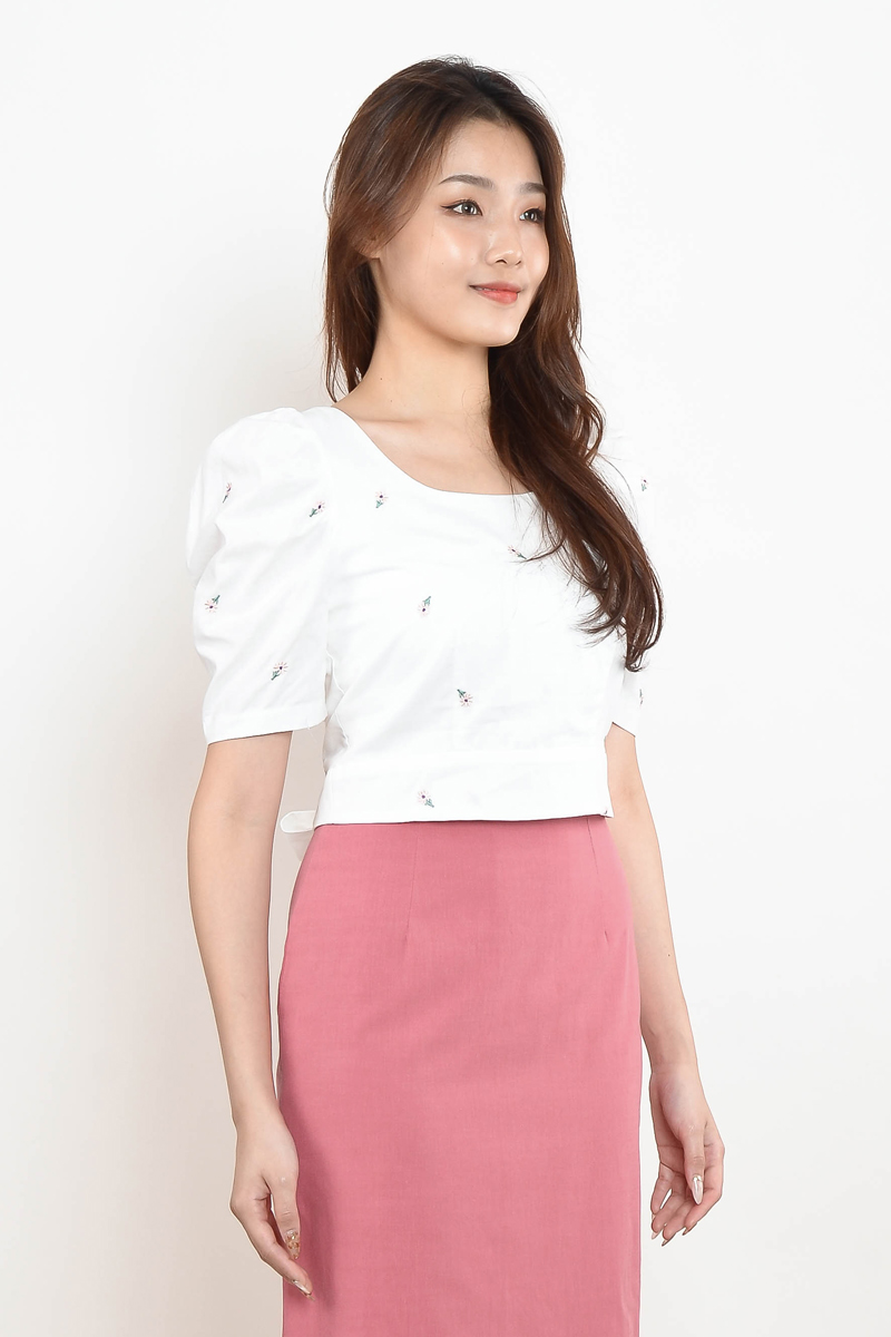 Inge Embroidery Floral Top - Pink