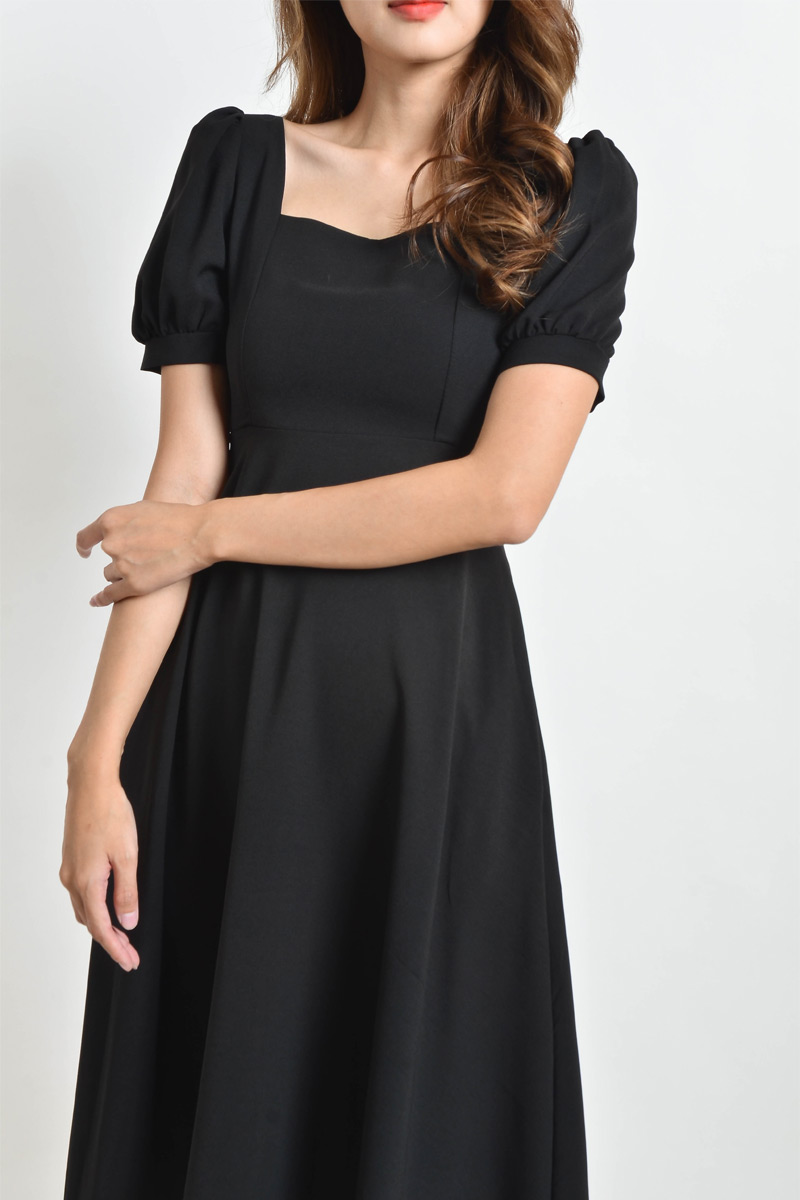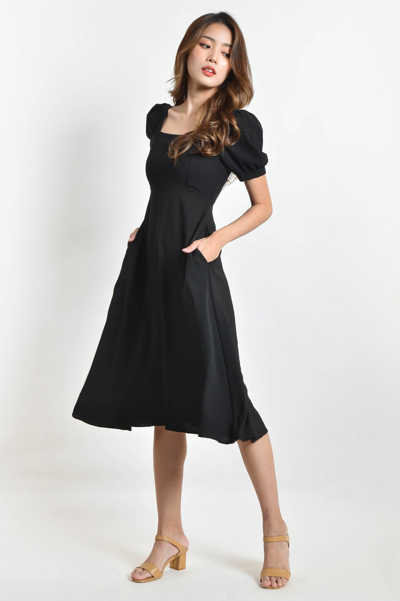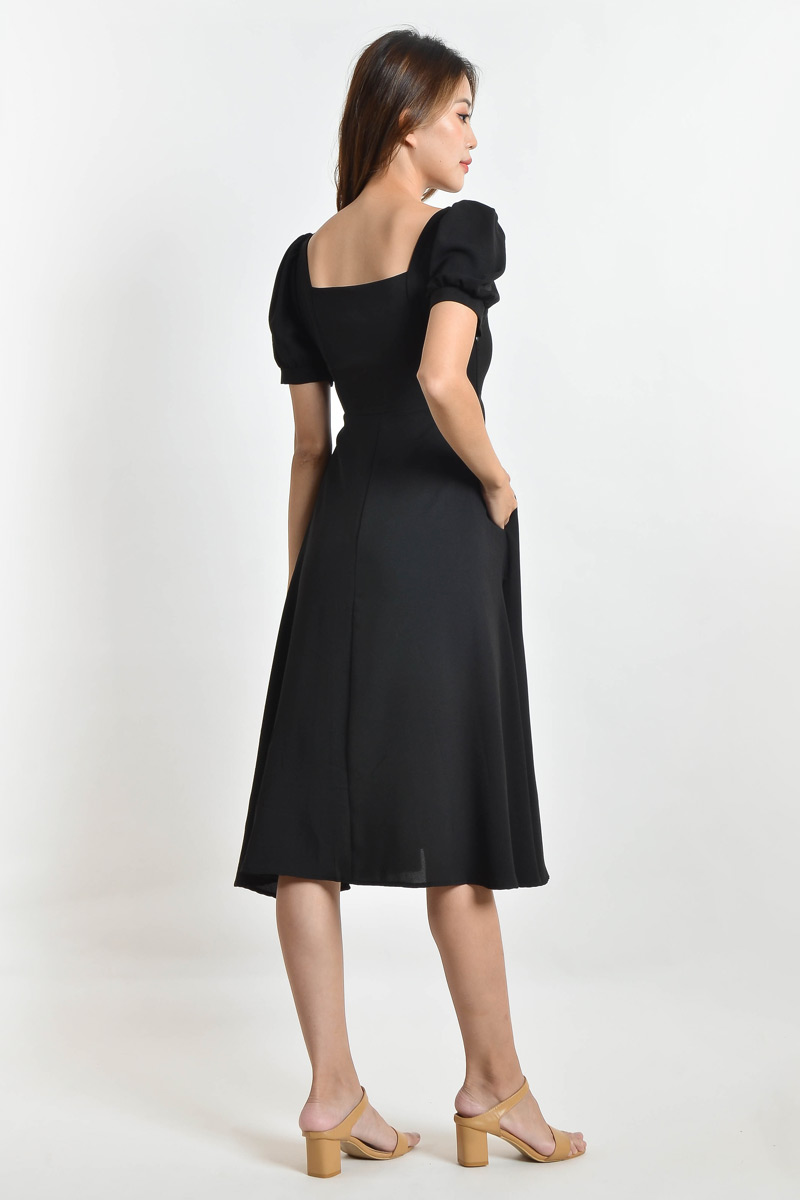 Karisa Square Neck Midi Dress - Black