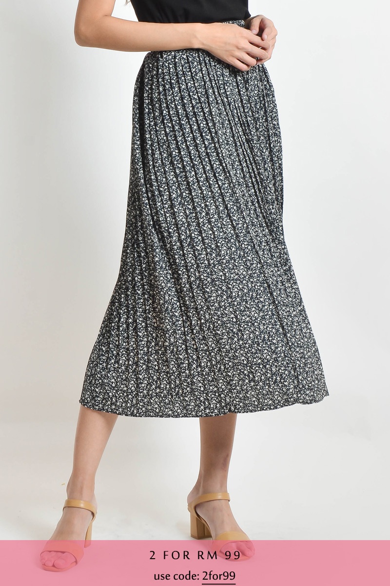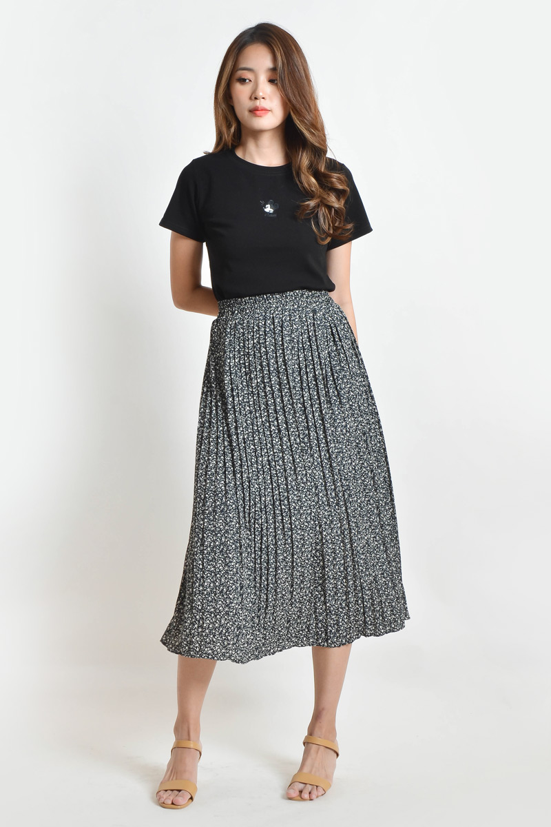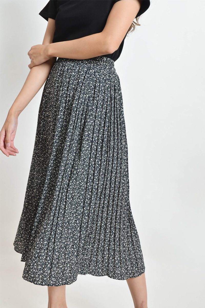 Katherine Floral Pleated Skirt - Black