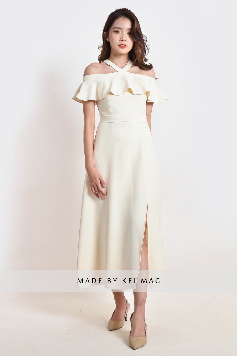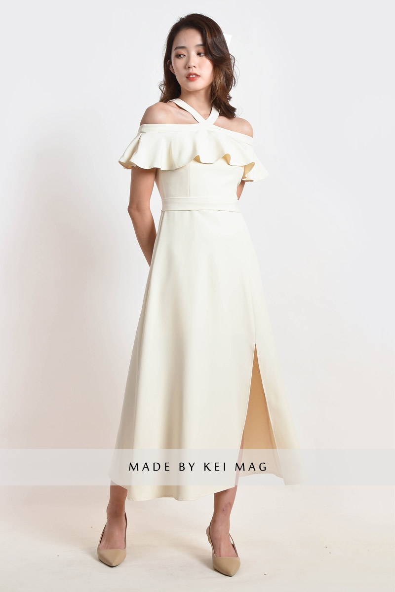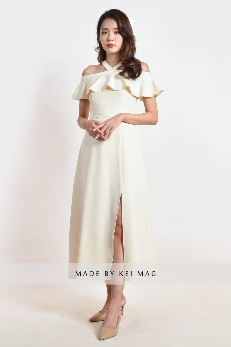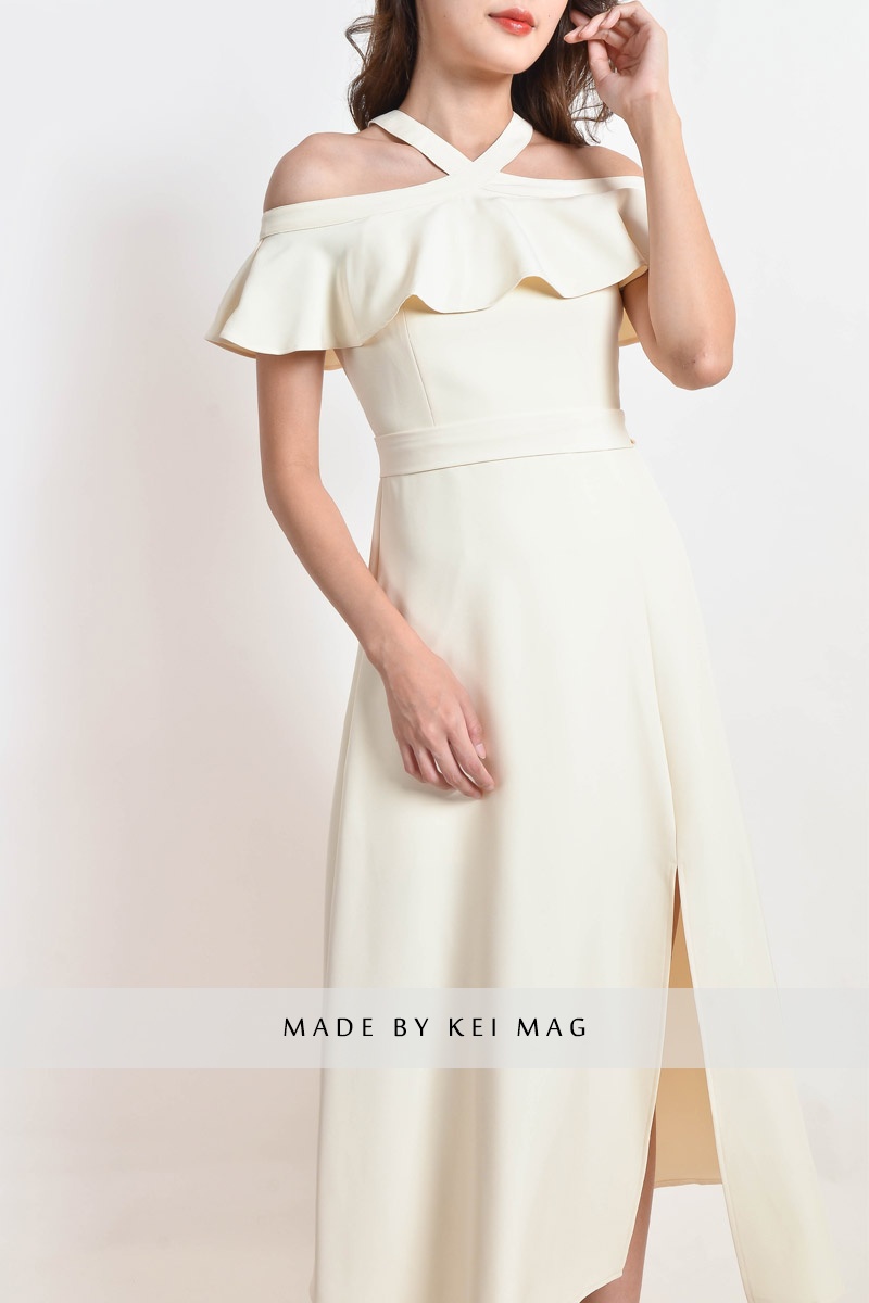 Kaylem Halter Slit Dress - White