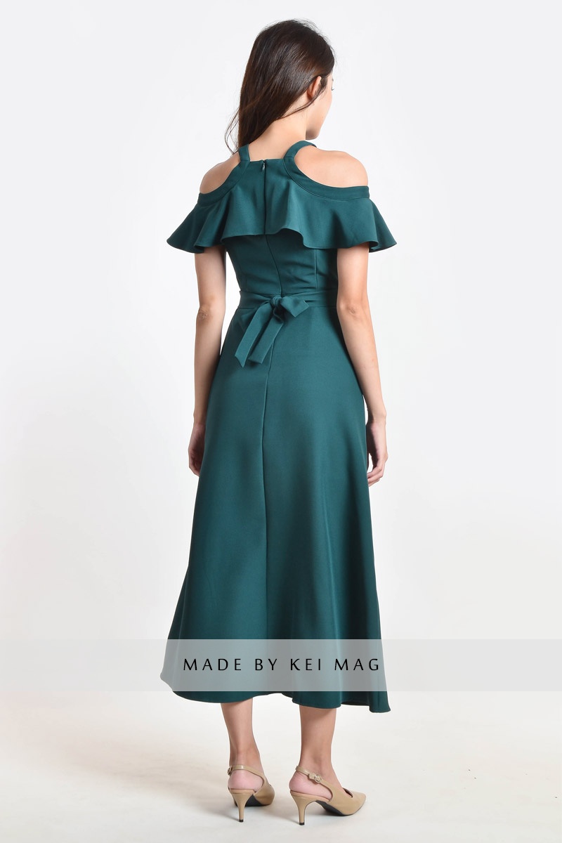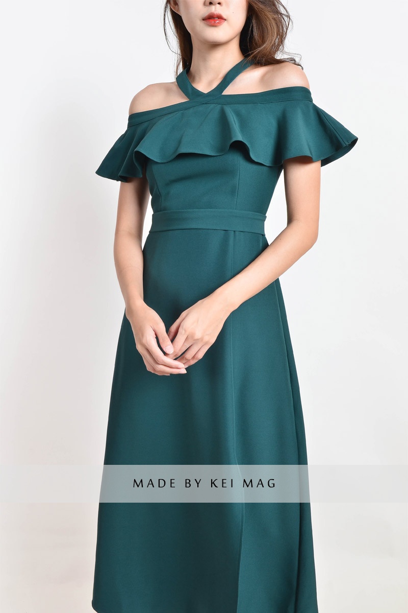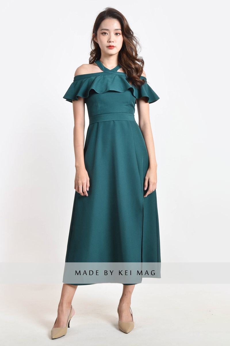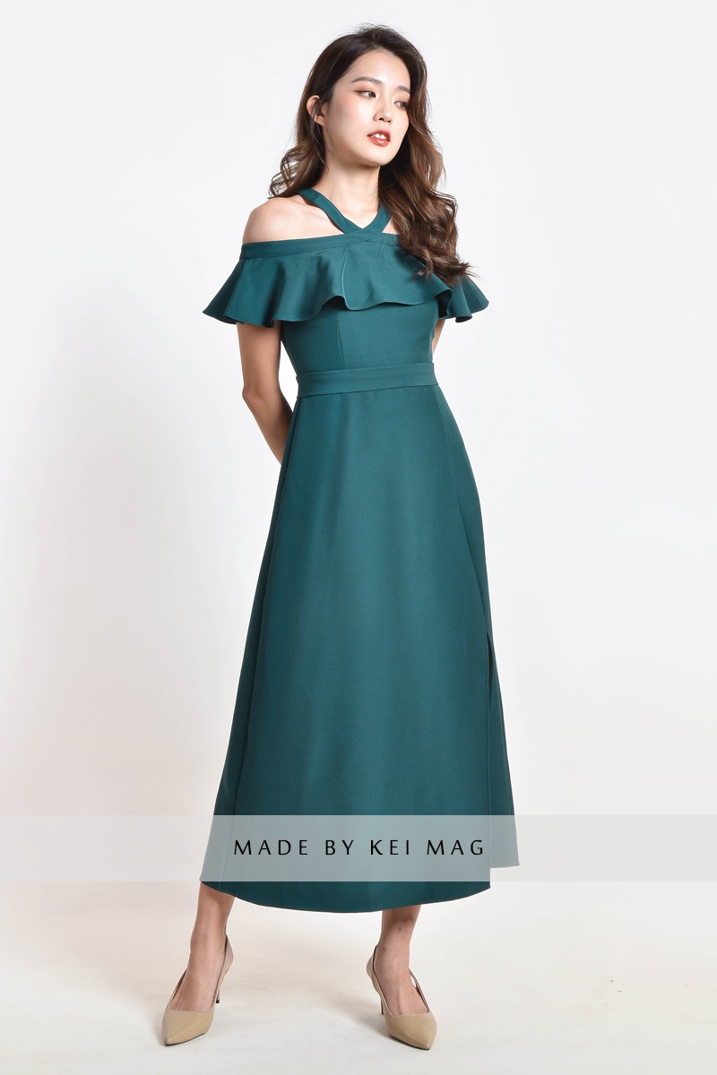 Kaylem Halter Slit Dress - Dark Cyan