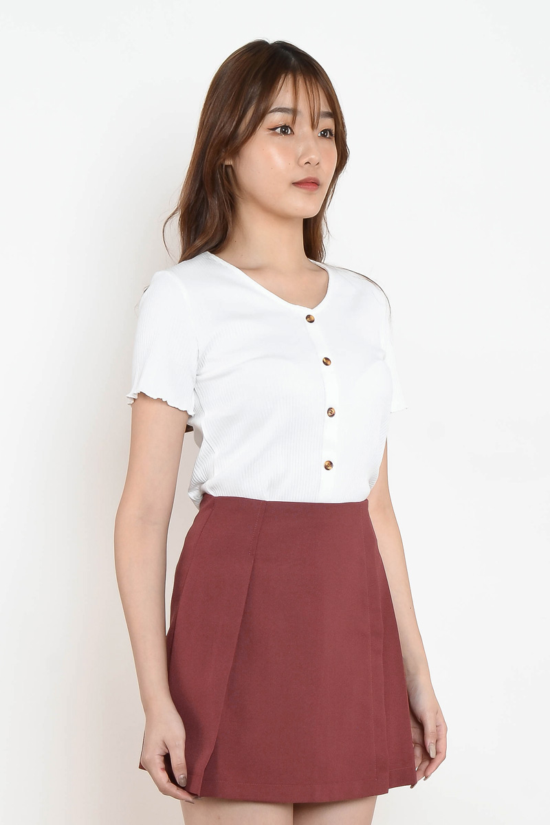 White - Effie Pleated Skort - Brick