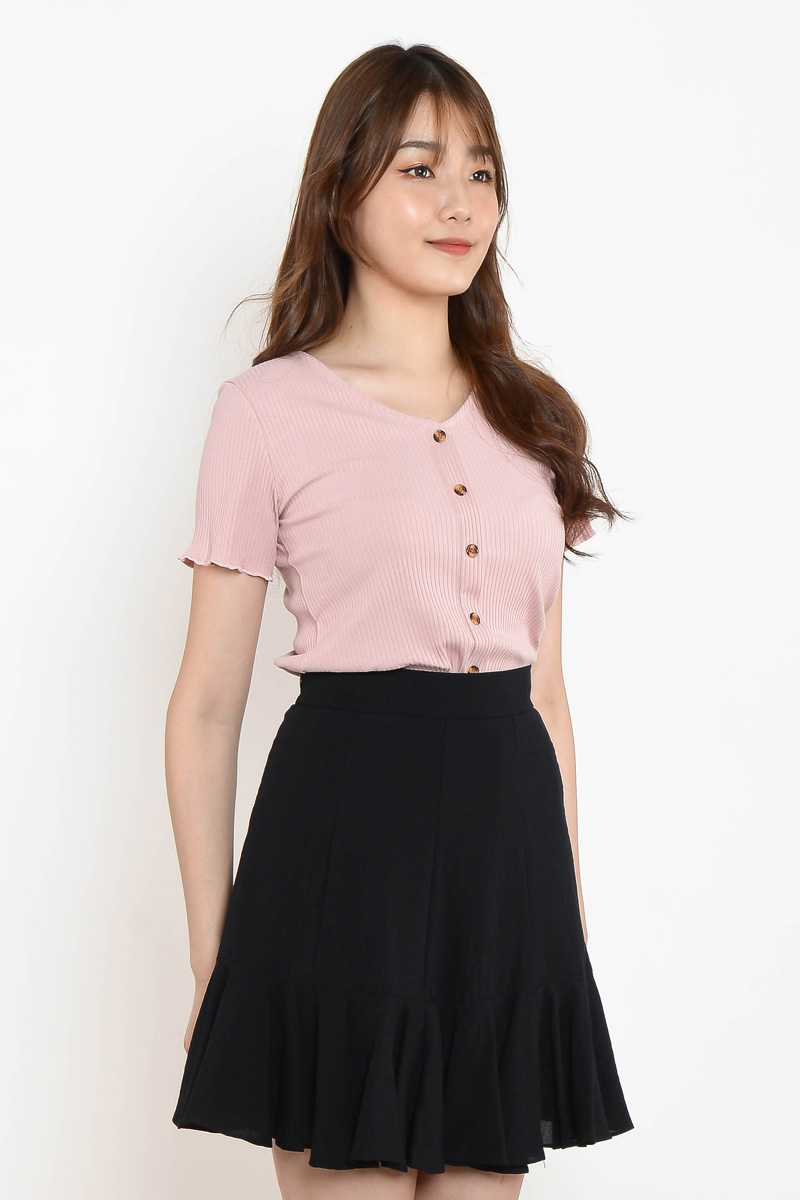 Pink - Amaya Ruffle Skirt - Black
