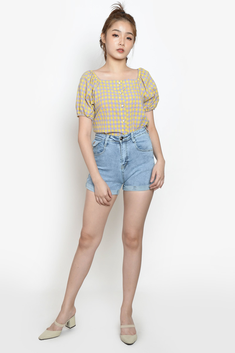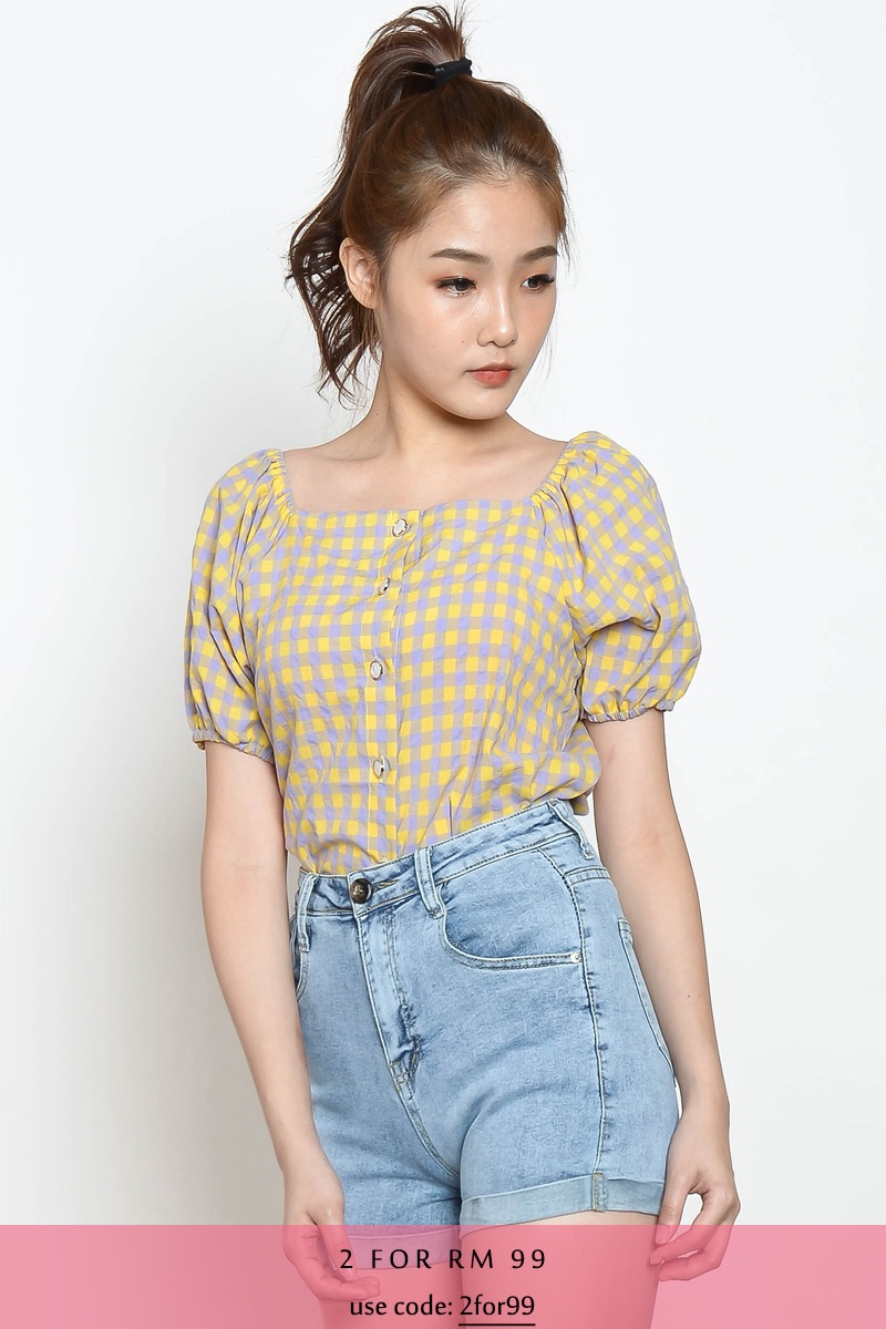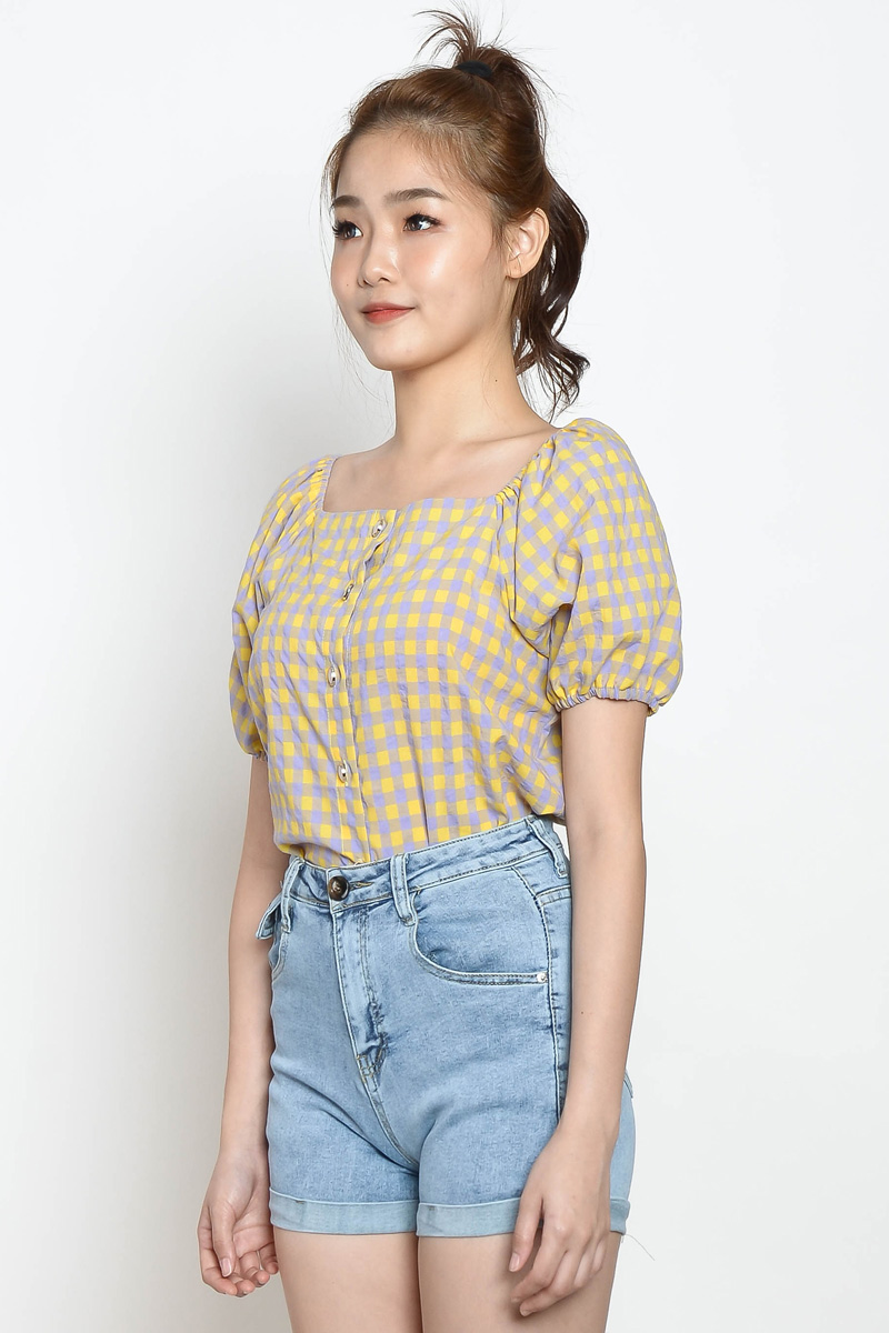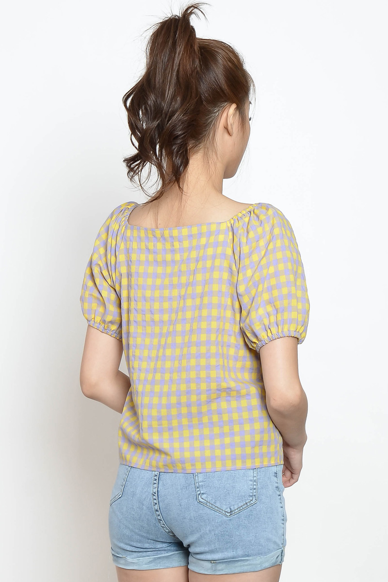 Marion Gingham Puff Sleeve Top