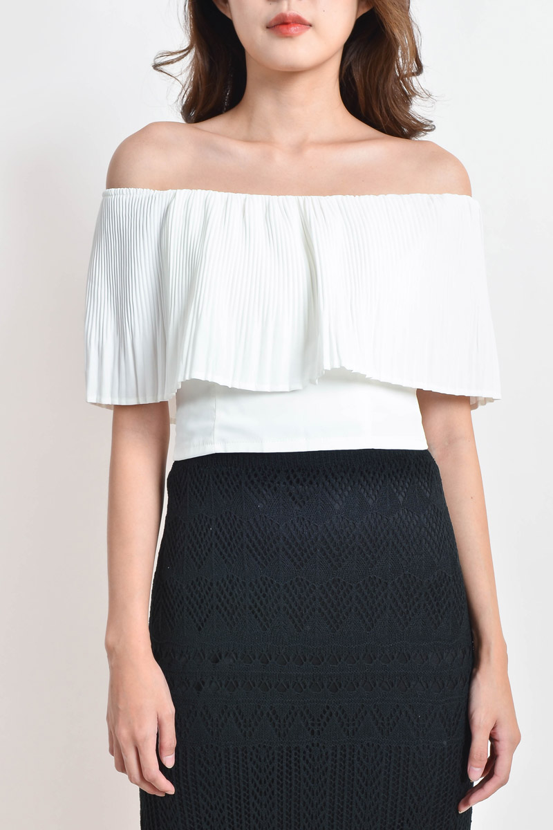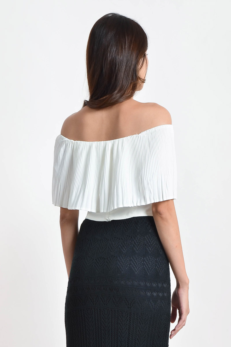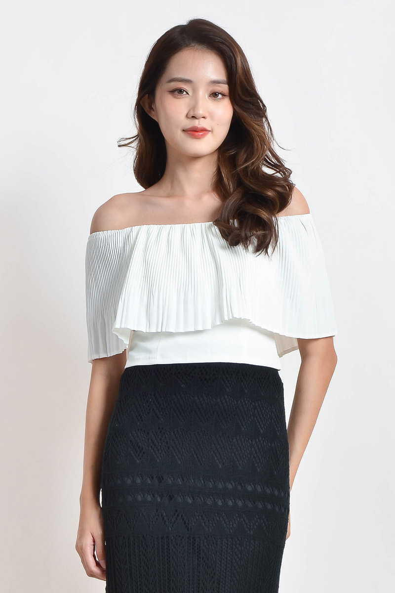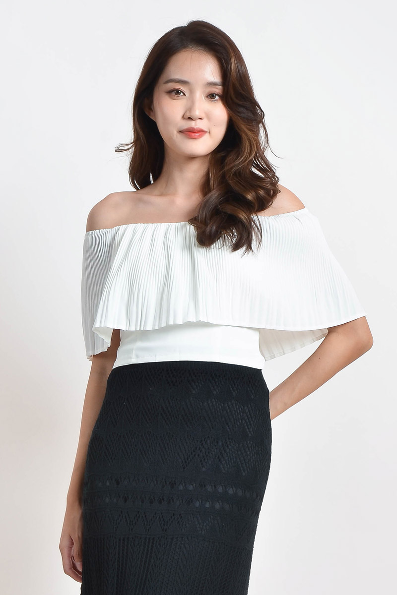 Mickie Pleated Off Shoulder Top - White