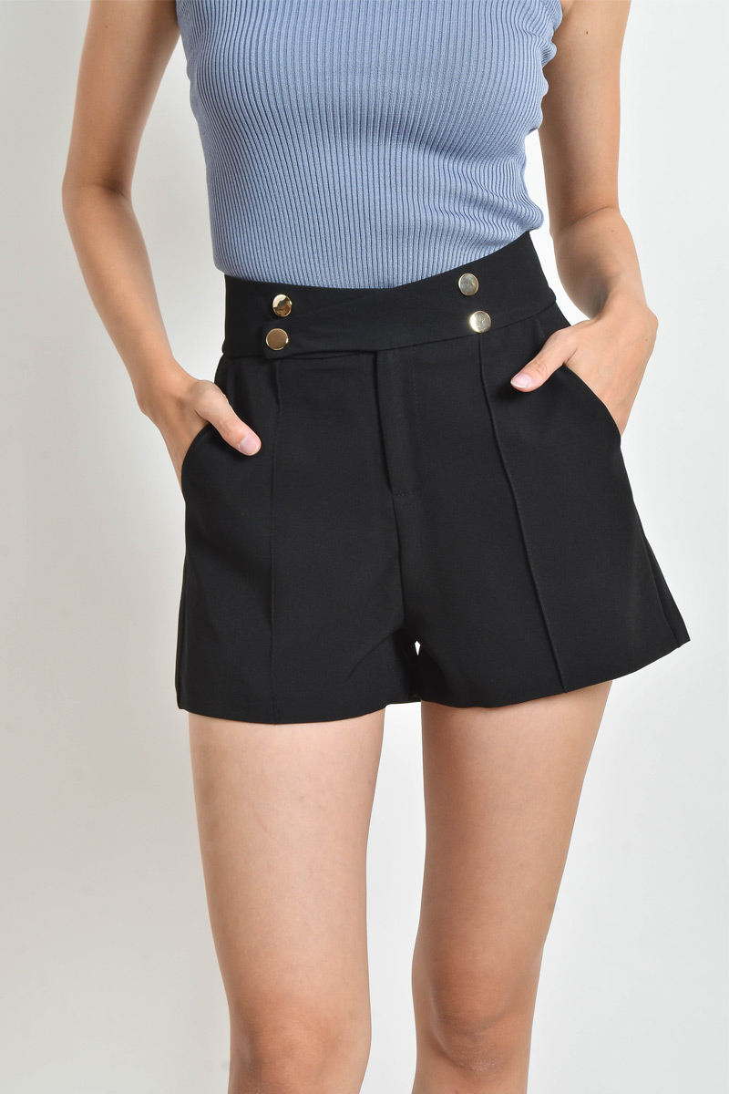 Nanette Button Shorts - Black