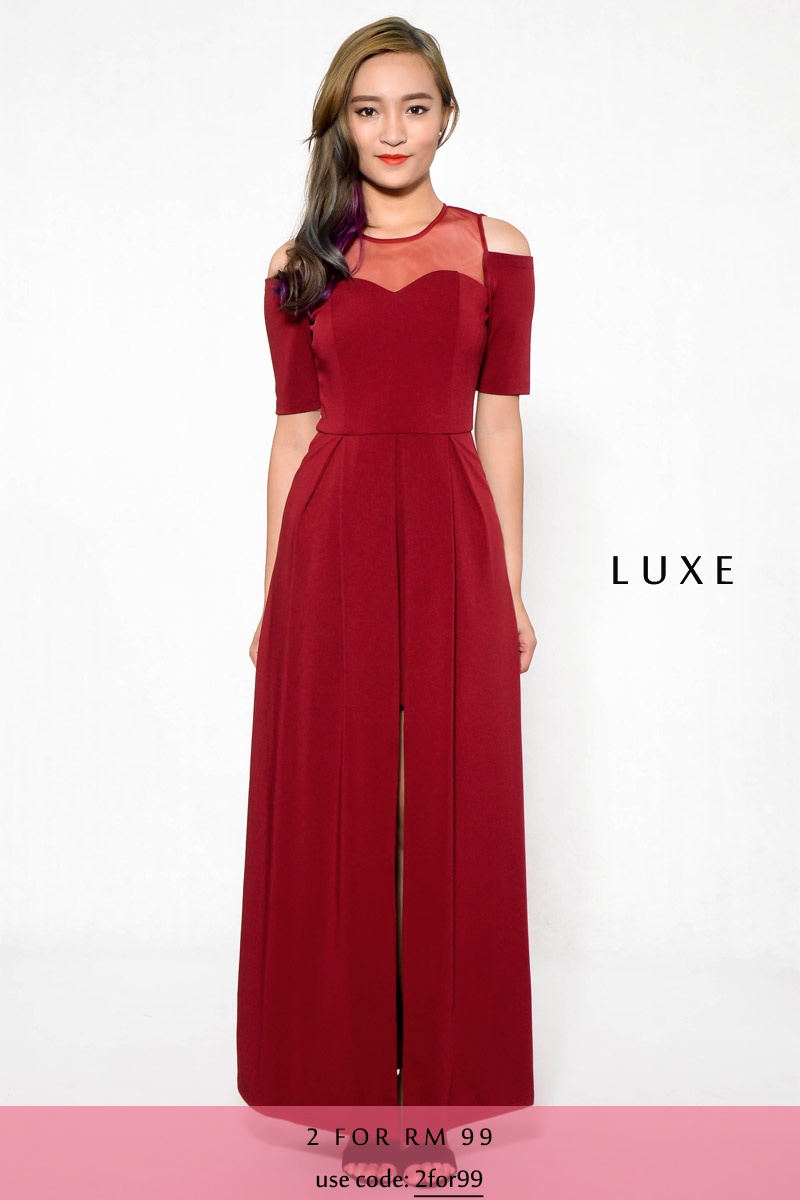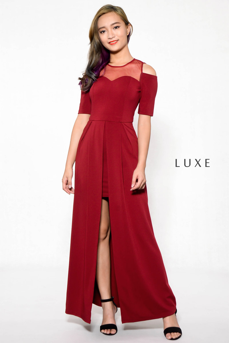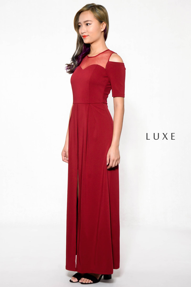 Regilla Cold Shoulder Maxi Dress - Wine