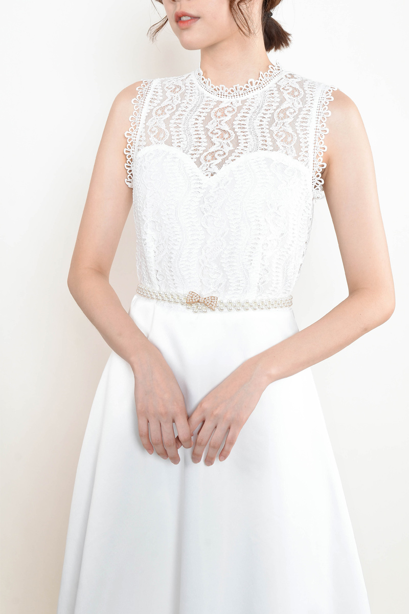 Linsey Cold Shoulder Lace Dress - White