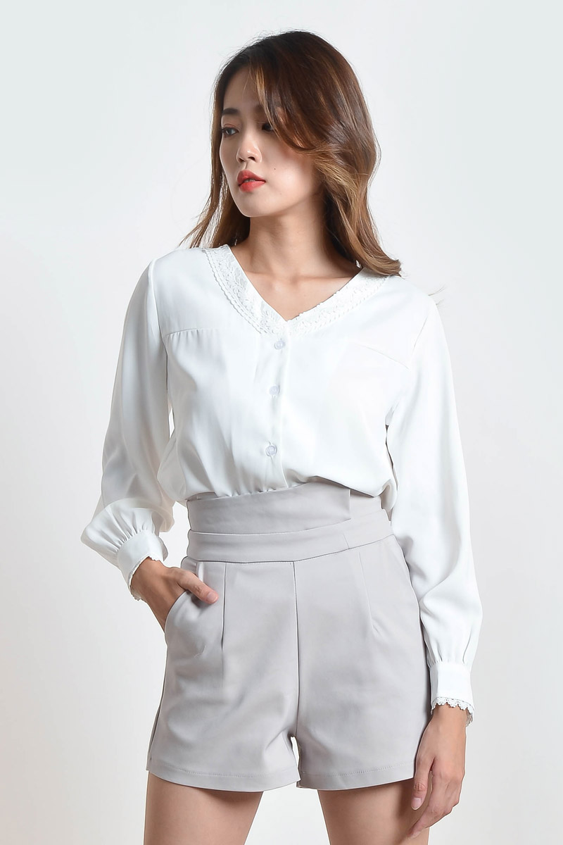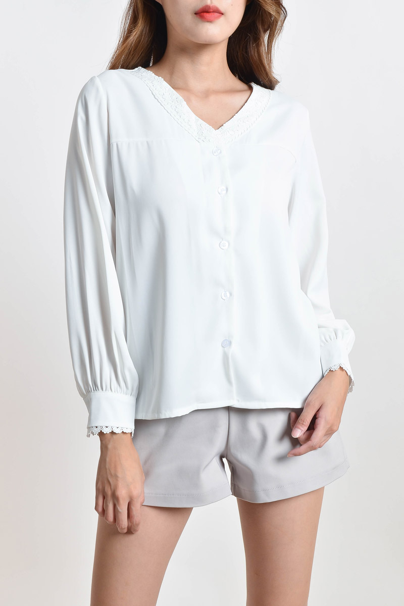 Vicenta Crochet V Neck Top - White