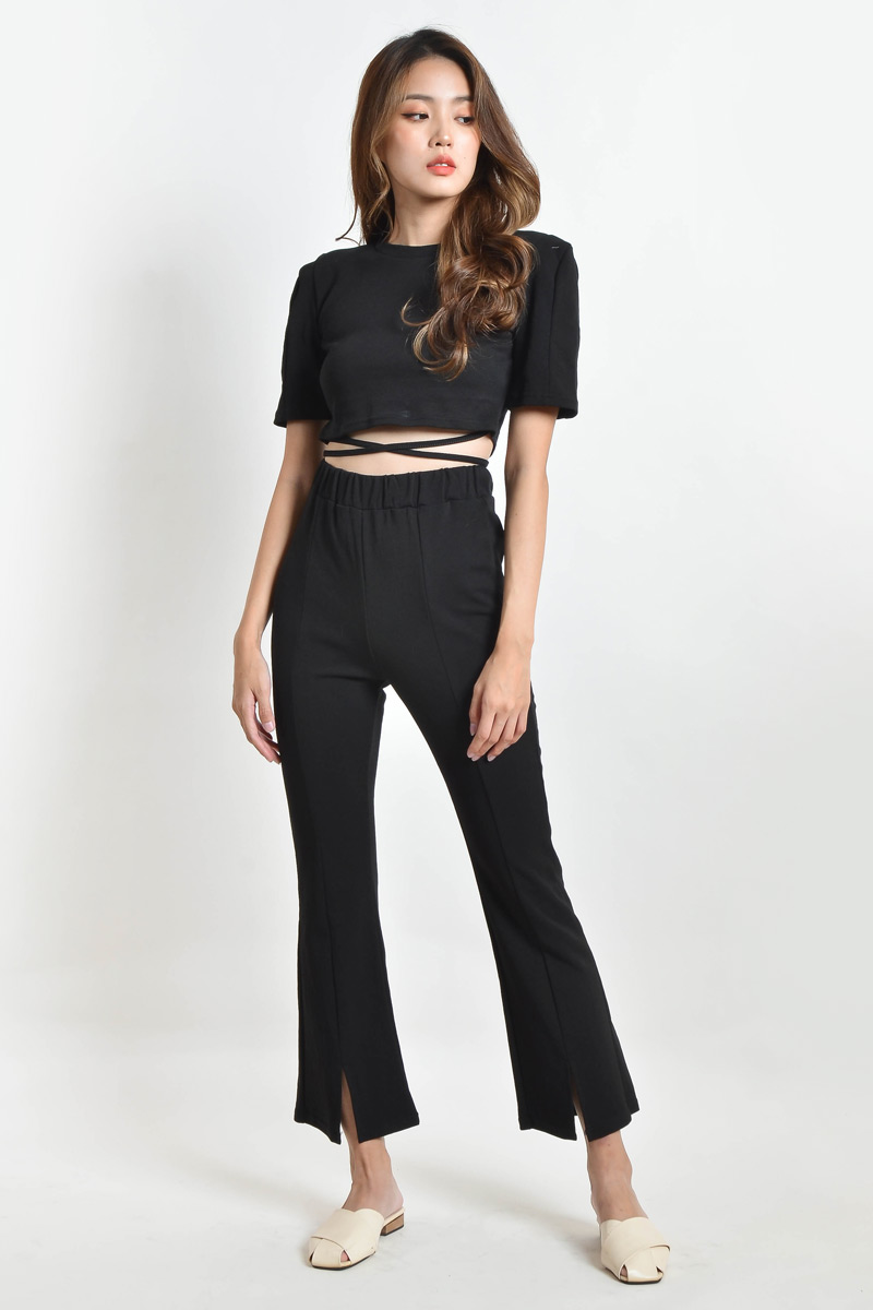 Virge Crop Top and Slit Pants Suit - Black